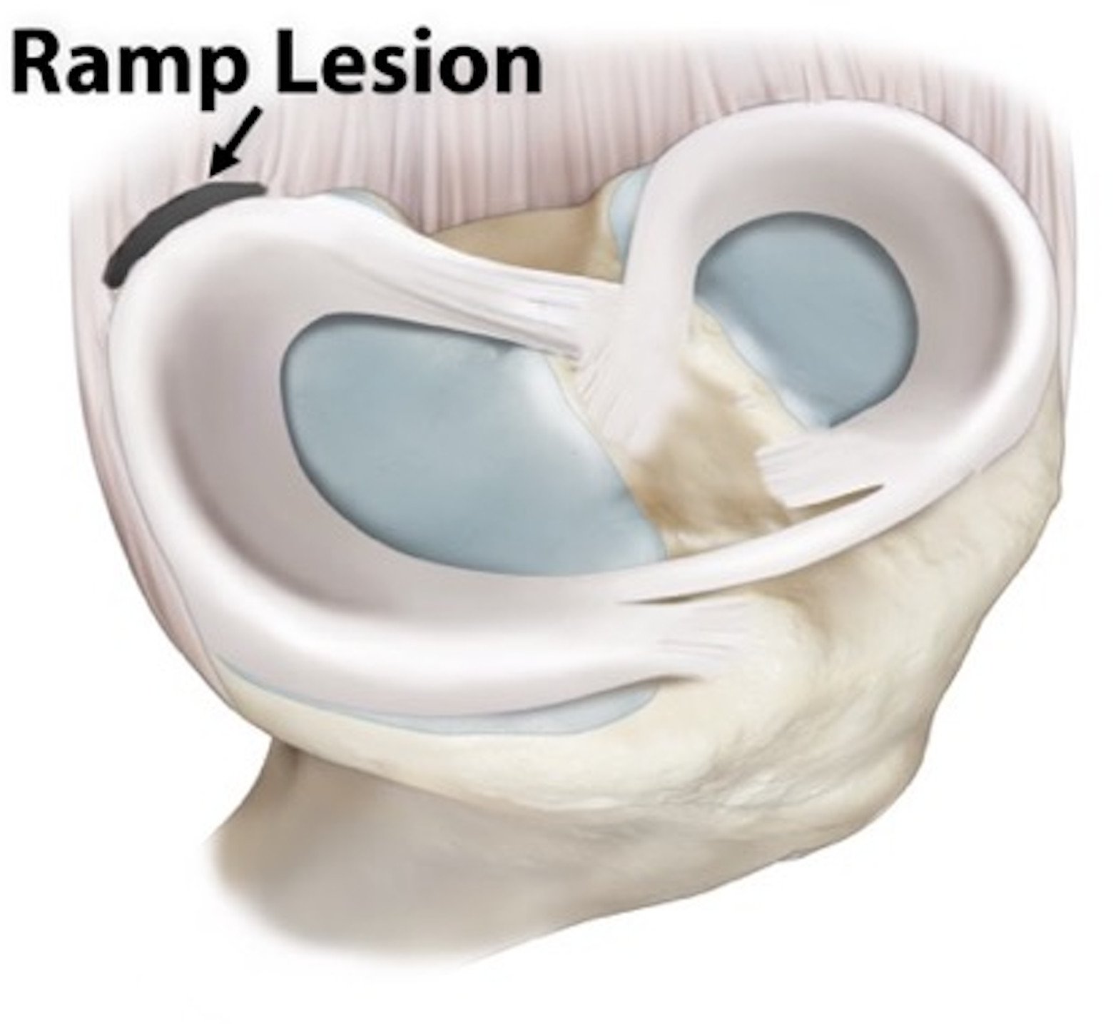 Meniscal ramp lesions are injuries of the posterior horn of the medial meniscus at the meniscocapsular junction or the meniscotibial ligament and are frequently associated with concomitant anterior cruciate ligament (ACL) injury.